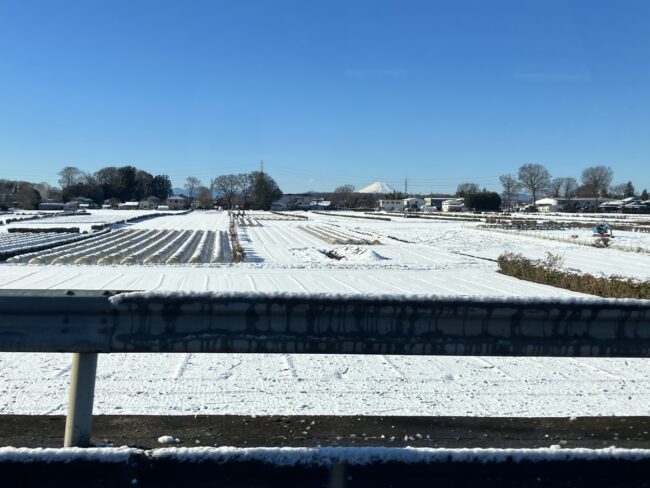 元旦の夜は雪が降ったので、車で向かいながら「雪だ雪だー♪」って写真撮ってたら、富士山しっかり入ってた♡嬉しいねぇ♡
